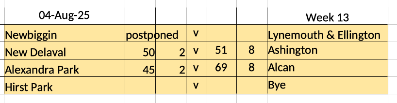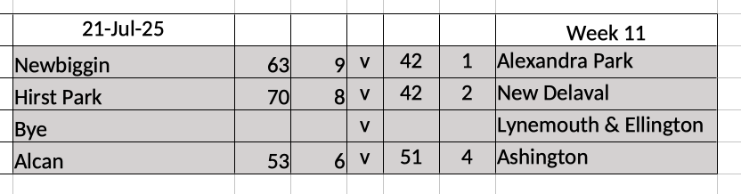 Results to be emailed to the League Secretary within 48hrs of the game being played.